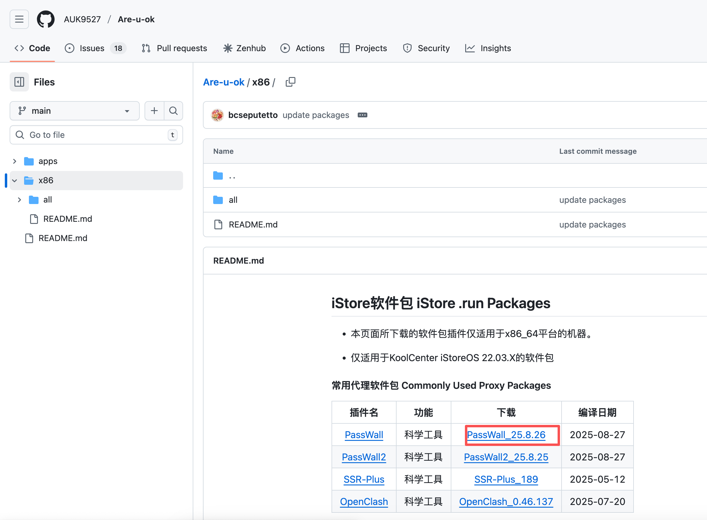 istoreos 的 istore 没有自带 PassWall,可以在 github 下载。